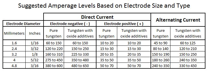 Welders are often looking for a good reference detailing recommended amperage levels based on tungsten welding electrode size and type. Although Midwest Tungsten Service only provides 1/16", 3/32", and 1/8" electrodes, some projects call for a slightly bigger diameter, such as 5/32" or 3/16". Additionally, you might have your own preference that fits your unique situation. We’ve put together a reference based on recommendations from the American Welding Society