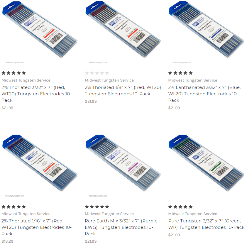 | 2% Lanthanated (Blue) | AC & DC | Inverter & Transformer | Aluminum alloys, magnesium alloys, nickel alloys, copper alloys, titanium alloys, low-alloyed steels, and non-corrosive steels BUY NOW |