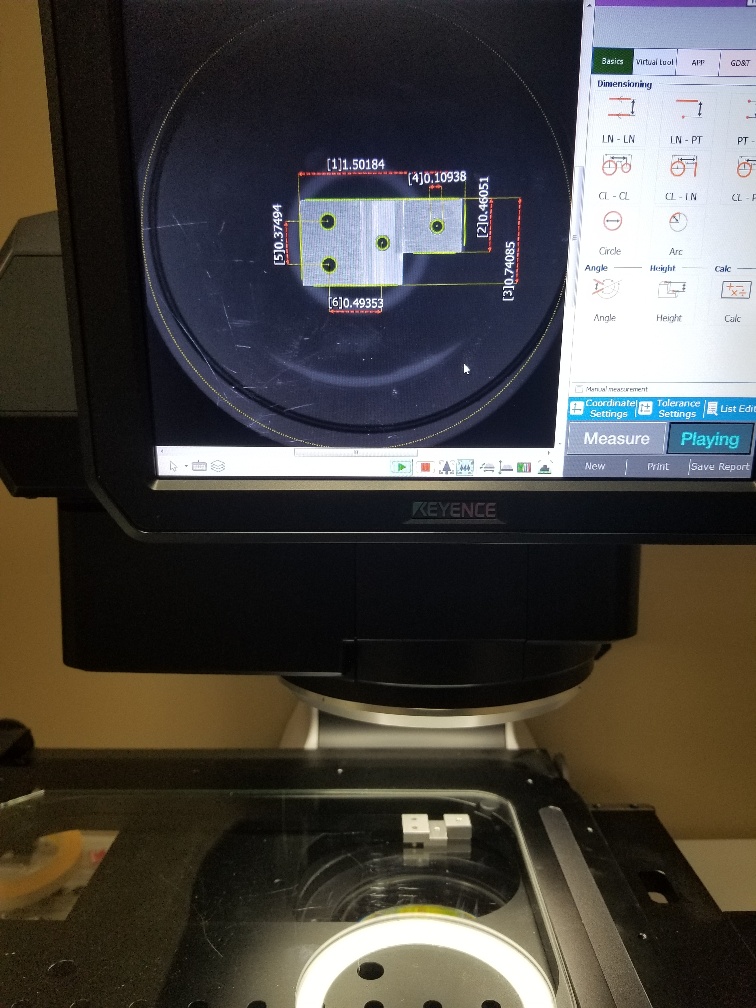 In addition to the standard micrometers and calipers that you might find in most machine shops, we have a number of CMMs (Coordinate Measurement Machines) of both the touch probe and optical inspection type. Some of these devices can take measurements during a machining operation without even removing the part from the machine. We have a Profilometer to measure the surface finish of a part. We also have ultrasound inspection, magnetic susceptibility (mu) measuring equipment, and lots of other measuring equipment. Occasionally, we will send a part out for a very specific type of inspection that we don't have the capacity to perform ourselves.